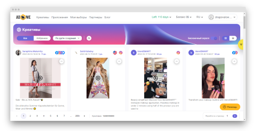 - Comfortable and user-friendly interface, options to save search settings in templates, create your collections of creatives, easy search by filters in groups